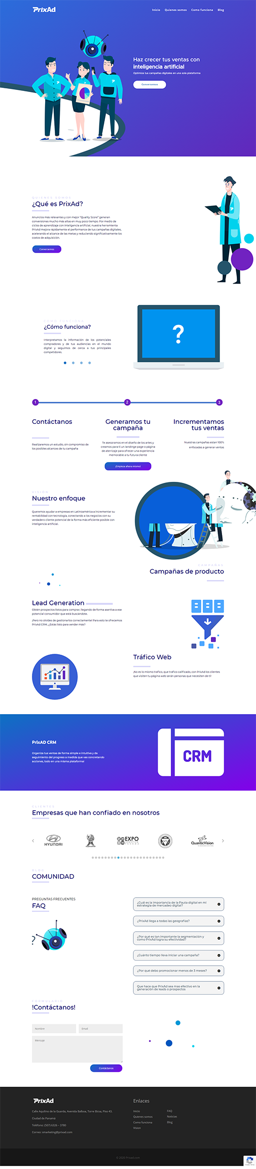 Este sitio fue construido con el CMS WordPress, con un alto nivel de detalle y exigencias en el diseño todo está como el equipo de diseño de Prixad lo deseo. Tiene bastante contenido dinámico que mostraremos a continuación.